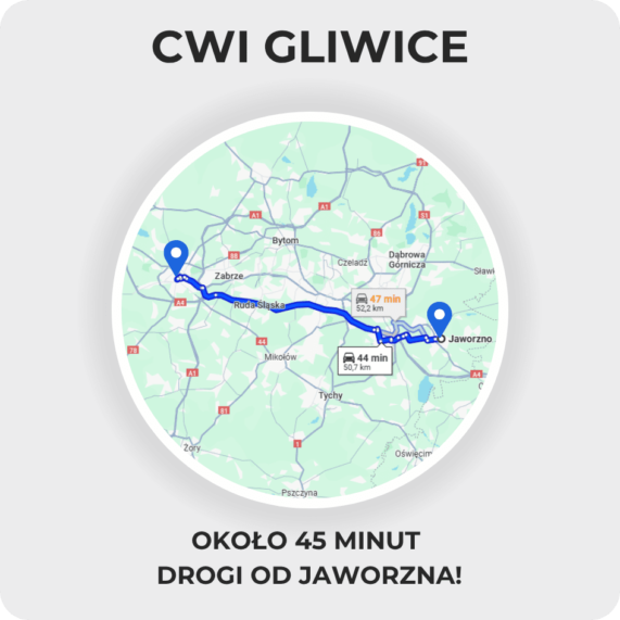 Choć w Jaworznie nie ma jeszcze stacjonarnego punktu CWI, to CWI Gliwice będzie obsługiwać również mieszkańców Twojego miasta. W nowym punkcie znajdziesz: